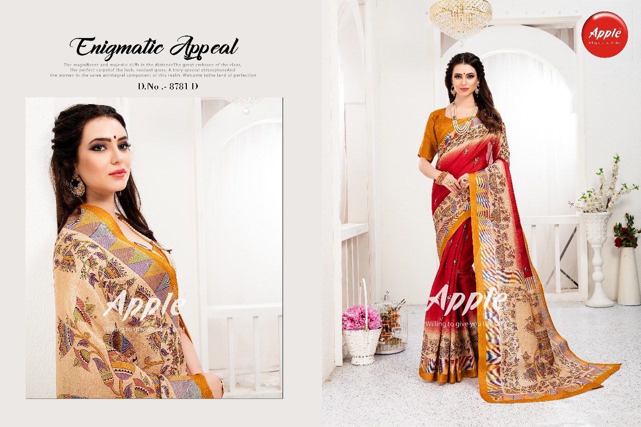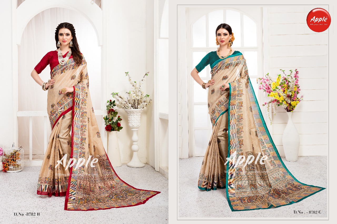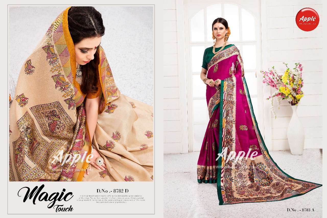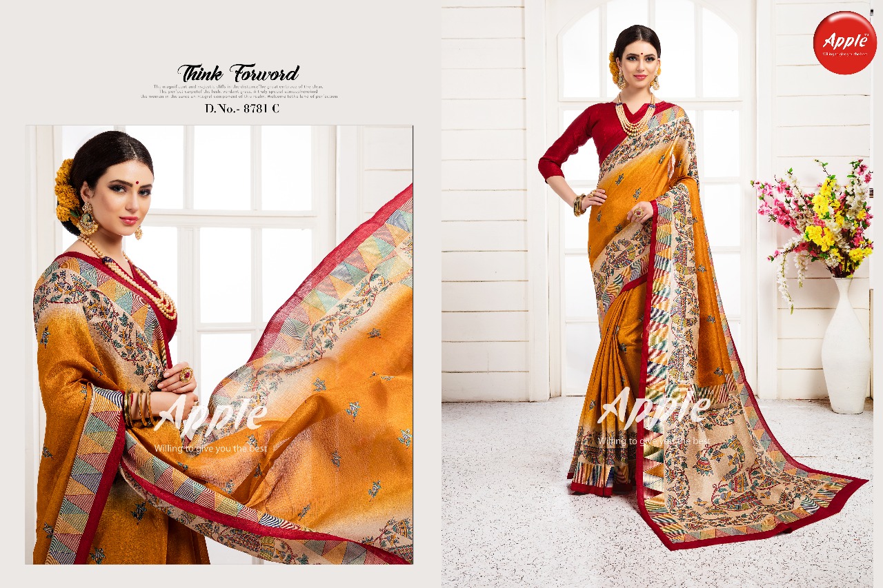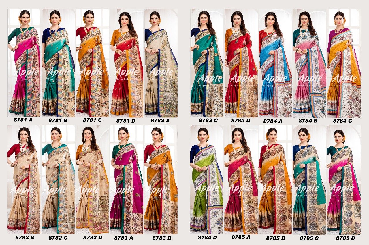 Apple Sarees Madhubani vol 8 With Heavy Look and Designer Party Wear Saree Comes With Heavy Lace And Pallu. Apple Sarees Madhubani vol 8 New Designs Available With Full and Single Catalogue Apple Sarees Madhubani vol 8 are for Wholesalers, Re sellers And Exporter Of Designer Suits , Party Wear Suits , Pakistani Suits , Casual Suits , Bridal Lehenga Choli , Occasional And Festive Ethnic Wear And Indian Wear Dress Code At Best Price In Surat . For More Collection Of SILk, GEORGETTE, CREPE And Others Brands Like Zoya , Vinay Fashion , LT Nitya , Hotlady , Glossy Simar , Maisha Maskeen, Fiona , Nakkashi , Gulzar , Jinam Floral , Mughda . Mohini Fashion , Leo Fashion, Sybella Creation , Vipul Fashion , Karma Bela Fashion, Arihant ,Zubeda , Mehak , Kimora Heer ,Lavina , Varsiddhi , TFH , Triveni And For Other More Catalogues Please Contact On This Number +91 8347-3656-15 Or Email Us - [email protected]