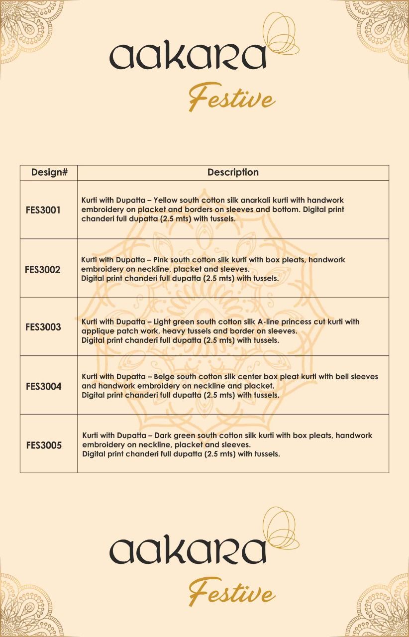 FESTIVE VOL-3 BY AAKARA 3001 TO 3005 SERIES 4275 + 5% GST Extra DESIGNER BEAUTIFUL STYLISH COLORFUL FANCY PARTY WEAR With Heavy Print And Texture are New Designs Available With Full and Single Catalog for Wholesaler And Exporter Of Designer Suits & Kurtis, Party Wear Suits , Pakistani Suits , Casual Suits , Bridal Lehenga Choli , Occasional And Festive Ethnic Wear And Indian Wear Dress Code At Best Price In Surat . For More Collection Of STUDIO And Others Brands Like Zoya , Vinay Fashion , LT Nitya , Hotlady , Glossy Simar , Maisha Maskeen, Fiona , Nakkashi , Gulzar , Jinam Floral , Mughda . Mohini Fashion , Leo Fashion, Sybella Creation , Vipul Fashion , Karma Bela Fashion, Arihant ,Zubeda , Mehak , Kimora Heer ,Lavina , Varsiddhi , TFH , Triveni And For Other More Catalogues Please Contact On This Number +91 8347-3656-15 Or Email Us - [email protected]