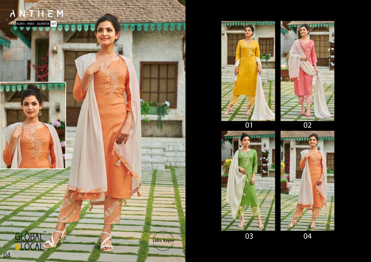 GLOBAL LOCAL ANTHEM 01-04 Series KURTI WITH PANT AND DUPATTA CATALOG Collection Deexture Are New Designs Availaler With Heavy Print And Table With Full And Single Catalog For Wholesaler And Exporter Of Designer Suits & Kurtis, Party Wear Suits , Pakistani Suits , Casual Suits , Pakistani Salwar Suits, Bollywood Designer Lehenga Choli, Low Price Cotton Printed Salwar Kameez, WhoLesale Sarees CAtALoGue ,EthNic Wear For Women ,S4U Kurtis Catalogue , Designer Kurtis Wholesale ,Dress Material Wholesale, Bridal Lehenga Choli , Occasional And Festive Ethnic Wear And Indian Wear Dress Code At Best Price In Surat . For More Collection Of Studio And Dealing In All Major Brands From Surat Like Aashirwad , Alok Suits , Amirah , Angroop Plus , Arihant Designer , Avc , Balaji Cotton , Bela , Belliza , Cosmos , Cygnus , Deepsy , Deeptex , Diksha , Diya Trendz , Eba , Fairlady , Fepic , Fiona. , Four Button , Ganga , Gulzar , Hansa , House Of Lawn , Inaya , Ishaal Prints , Jinaam Dresses, Jk Cotton , Juvi Fashion , Kajal Style , Kajree Fashion , Kalarang , Kapil Kap , Karachi Suits , Karma Trendz , Kesari Trendz , Kessi Fabrics , Kiana Kurti , Kimora Fashion , Krishriyaa , Levisha , Lt Fabrics , Lymi , M3 Fashion , Maisha , Manas Kurti , Mcm Lifestyle , Meera Trendz , Mesmora , Mf , Mrigya , Mittoo Kurti , Mohini Fashion , Moof Fashion, Mugdha , Mumtaz Arts , Psyna Tex , Radhika Fashion , Rangoon , Rani Trendz , Rsf , Rupali Trendz , Rr Fashion , Rvee Gold , S4U , Sahiba , Sajawat Creation , Samaira Fashion , Sargam Prints , Shahnaz Arts , Shraddha Designer , Shree Fabs , Seriema , Sybella , Tanishk Fashion , Tunic House , Twisha , Vasanche , Viksit Fab , Vinay Fashion , Vink Kurti , Vipul Fashion , Volono Trendz , Vf Kurti , Your Choice , Zs Textile , Zubeda Zoya , Vinay Fashion Wholesale, Lt Nitya , Hotlady , Glossy Simar , Deepsy Suit ,Maisha Maskeen, Fiona , Nakkashi , Gulzar , Jinam Floral , Mugdha Suits , Mohini Fashion , Leo Fashion, Sybella Creation , Vipul Fashion , Karma Bela Fashion, Arihant ,Zubeda , Mehak , Kimora Heer ,Lavina , Varsiddhi , Tfh , Triveni And For Other More Catalogues Please Contact On This Number +91 8347-3656-15 Or Email Us - [email protected]