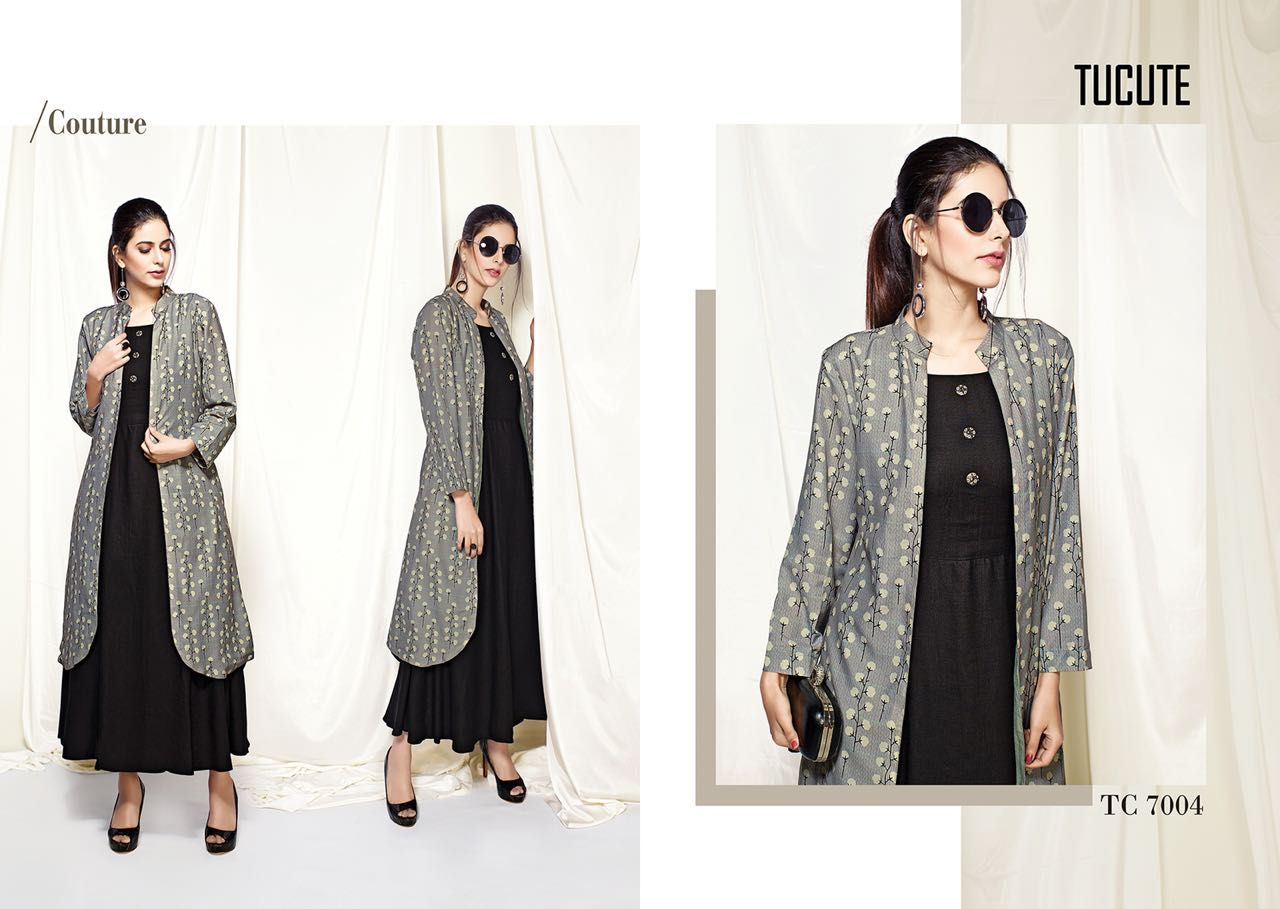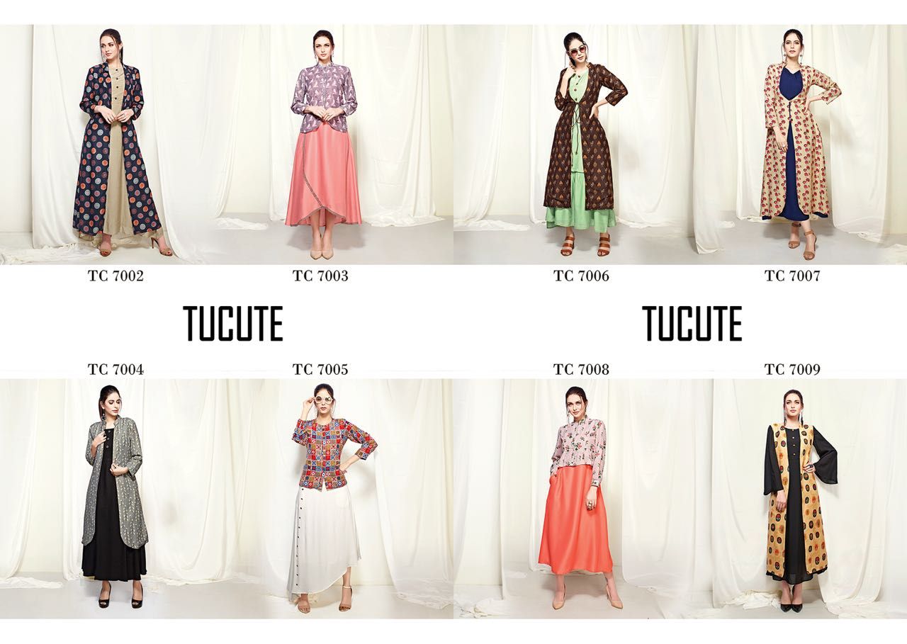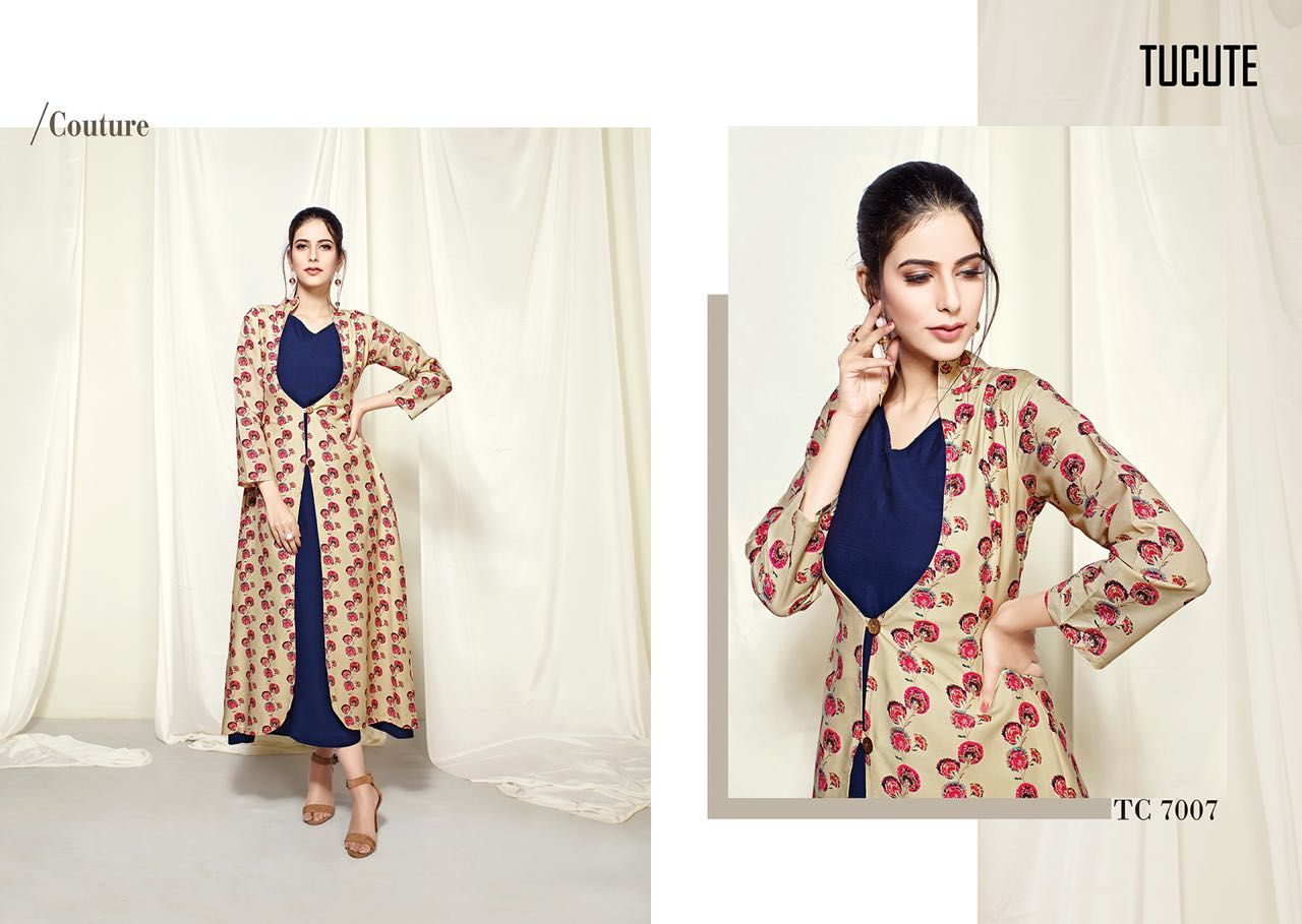 KARMA TUCUTE VOL 7 MUSLIN DESIGNER JACKET STYLE LONG KURTI SUPPLIER With Heavy Look and Designer Party Wear Saree Comes With Heavy Lace And Pallu.KARMA TUCUTE VOL 7 MUSLIN DESIGNER JACKET STYLE LONG KURTI SUPPLIER New Designs Available With Full and Single Catalogue KARMA Fashion presenting exclusive concept of Sarees for Wholesalers, Re sellers And Exporter Of Designer Suits , Party Wear Suits , Pakistani Suits , Casual Suits , Bridal Lehenga Choli , Occasional And Festive Ethnic Wear And Indian Wear Dress Code At Best Price In Surat . For More Collection Of SILk, GEORGETTE, CREPE And Others Brands Like Zoya , Vinay Fashion , LT Nitya , Hotlady , Glossy Simar , Maisha Maskeen, Fiona , Nakkashi , Gulzar , Jinam Floral , Mughda . Mohini Fashion , Leo Fashion, Sybella Creation , Vipul Fashion , Karma Bela Fashion, Arihant ,Zubeda , Mehak , Kimora Heer ,Lavina , Varsiddhi , TFH , Triveni And For Other More Catalogues Please Contact On This Number +91 8347-3656-15 Or Email Us - [email protected]