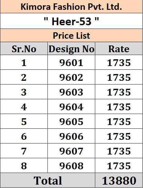 kimora launch heer vol 53 9601-9612 Series 13880 + 5% GSt Extra georgette with lukhnowi work salwar suit collection dealer With Heavy Print And Texture Are New Designs Available With Full And Single Catalog For Wholesaler And Exporter Of Designer Suits & Kurtis, Party Wear Suits , Pakistani Suits , Casual Suits , Pakistani Salwar Suits, Bollywood Designer Lehenga Choli, Low Price Cotton Printed Salwar Kameez, Wholesale Sarees Catalogue,Ethnic Wear For Women ,S4U Kurtis Catalogue , Designer Kurtis Wholesale,Dress Material Wholesale,Bridal Lehenga Choli , Occasional And Festive Ethnic Wear And Indian Wear Dress Code At Best Price In Surat . For More Collection Of Studio And Dealing In All Major Brands From Surat Like Aashirwad , Alok Suits , Amirah , Angroop Plus , Arihant Designer , Avc , Balaji Cotton , Bela , Belliza , Cosmos , Cygnus , Deepsy , Deeptex , Diksha , Diya Trendz , Eba , Fairlady , Fepic , Fiona. , Four Button , Ganga , Gulzar , Hansa , House Of Lawn , Inaya , Ishaal Prints , Jinaam Dresses, Jk Cotton , Juvi Fashion , Kajal Style , Kajree Fashion , Kalarang , Kapil Kap , Karachi Suits , Karma Trendz , Kesari Trendz , Kessi Fabrics , Kiana Kurti , Kimora Fashion , Krishriyaa , Levisha , Lt Fabrics , Lymi , M3 Fashion , Maisha , Manas Kurti , Mcm Lifestyle , Meera Trendz , Mesmora , Mf , Mrigya , Mittoo Kurti , Mohini Fashion , Moof Fashion, Mugdha , Mumtaz Arts , Psyna Tex , Radhika Fashion , Rangoon , Rani Trendz , Rsf , Rupali Trendz , Rr Fashion , Rvee Gold , S4U , Sahiba , Sajawat Creation , Samaira Fashion , Sargam Prints , Shahnaz Arts , Shraddha Designer , Shree Fabs , Seriema , Sybella , Tanishk Fashion , Tunic House , Twisha , Vasanche , Viksit Fab , Vinay Fashion , Vink Kurti , Vipul Fashion , Volono Trendz , Vf Kurti , Your Choice , Zs Textile , Zubeda Zoya , Vinay Fashion Wholesale, Lt Nitya , Hotlady , Glossy Simar , Deepsy Suit ,Maisha Maskeen, Fiona , Nakkashi , Gulzar , Jinam Floral , Mugdha Suits , Mohini Fashion , Leo Fashion, Sybella Creation , Vipul Fashion , Karma Bela Fashion, Arihant ,Zubeda , Mehak , Kimora Heer ,Lavina , Varsiddhi , Tfh , Triveni And For Other More Catalogues Please Contact On This Number +91 8347-3656-15 Or Email Us - [email protected]