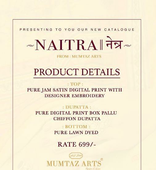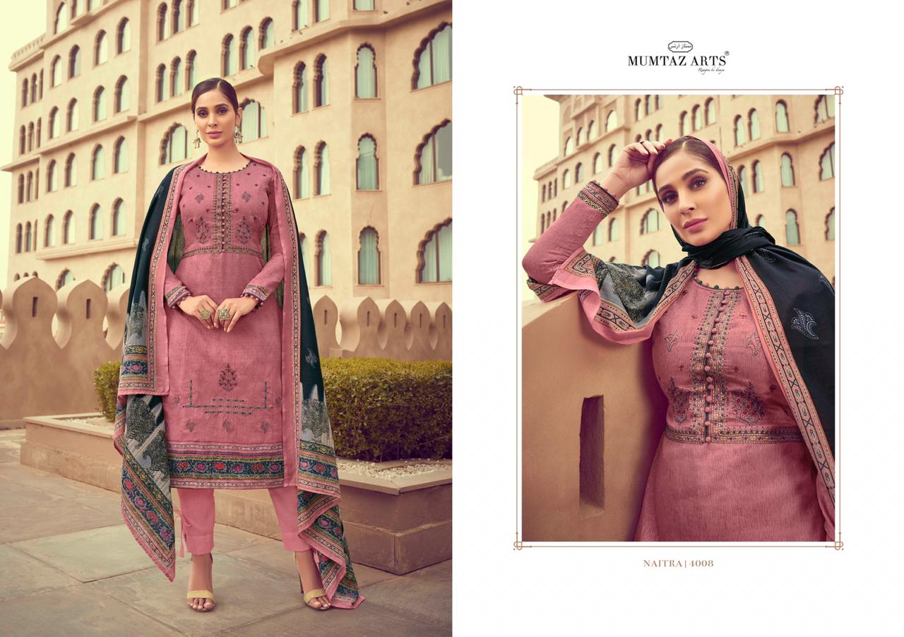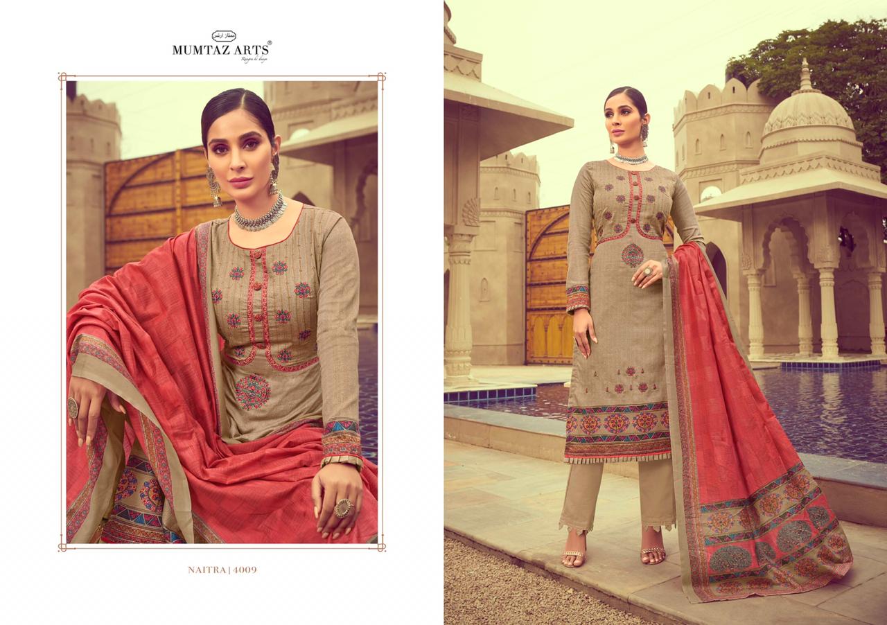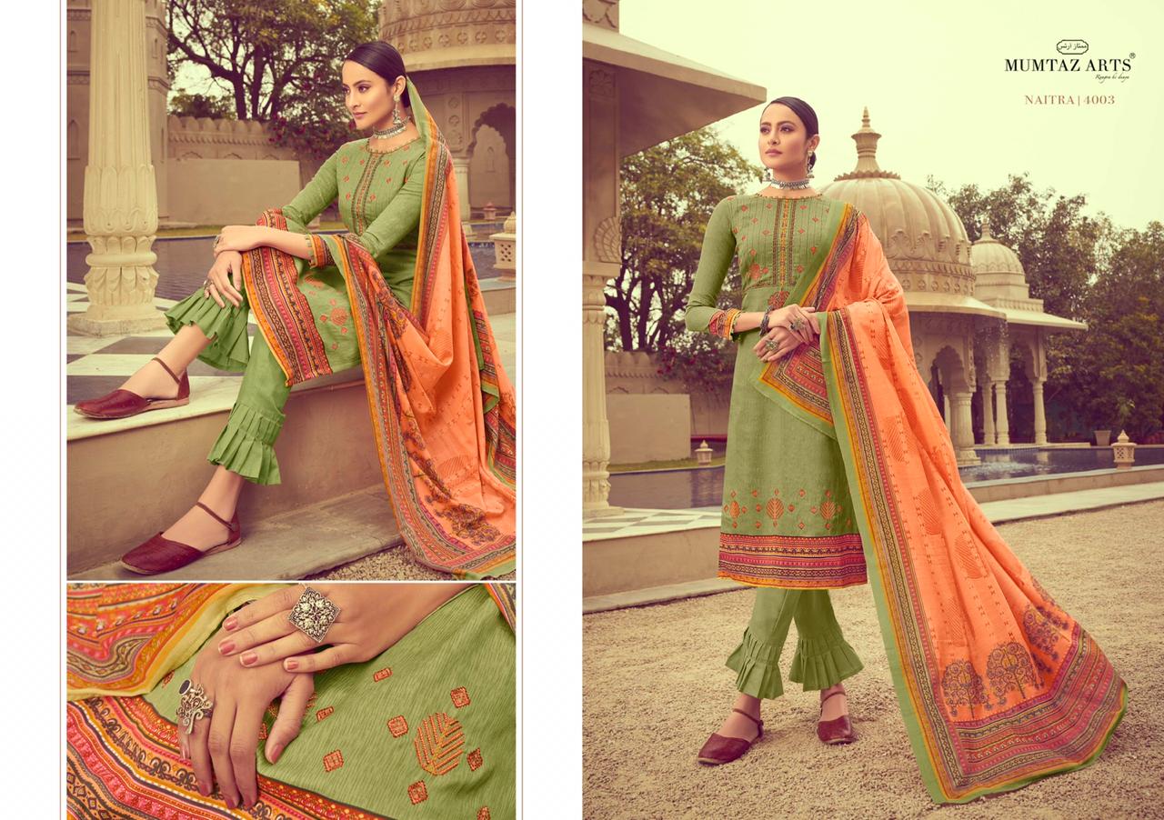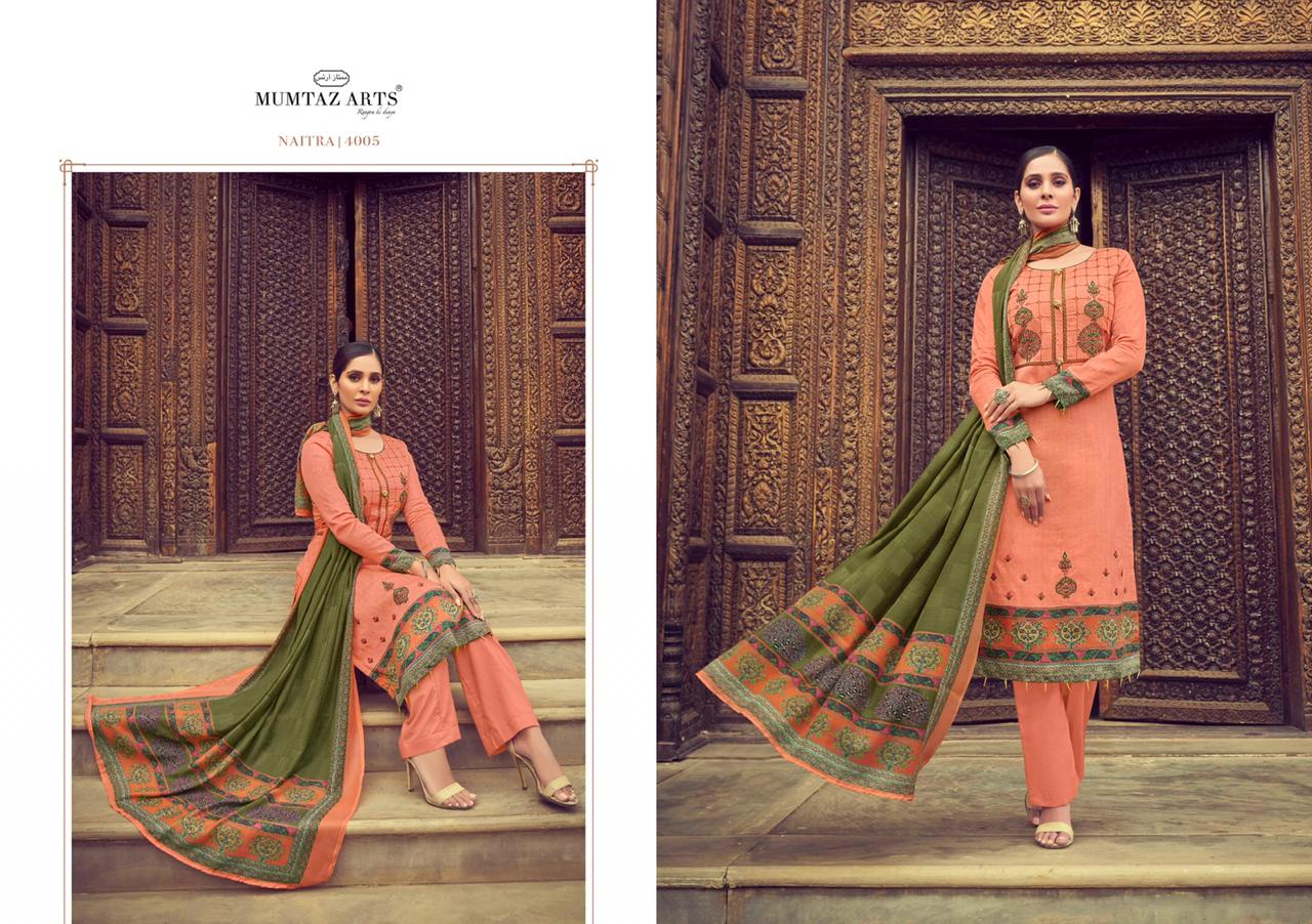 Mumtaz arts 4001- 4010 series 6990 + 5% Gst Extra naitra innovative style jam satin Embroided Salwar suits with chiffon duppata collection dealer With Heavy Print And Texture Are New Designs Available With Full And Single Catalog For Wholesaler And Exporter Of Designer Suits & Kurtis, Party Wear Suits , Pakistani Suits , Casual Suits , Pakistani Salwar Suits, Bollywood Designer Lehenga Choli, Low Price Cotton Printed Salwar Kameez, Wholesale Sarees Catalogue,Ethnic Wear For Women ,S4U Kurtis Catalogue , Designer Kurtis Wholesale,Dress Material Wholesale,Bridal Lehenga Choli , Occasional And Festive Ethnic Wear And Indian Wear Dress Code At Best Price In Surat . For More Collection Of Studio And Dealing In All Major Brands From Surat Like Aashirwad , Alok Suits , Amirah , Angroop Plus , Arihant Designer , Avc , Balaji Cotton , Bela , Belliza , Cosmos , Cygnus , Deepsy , Deeptex , Diksha , Diya Trendz , Eba , Fairlady , Fepic , Fiona. , Four Button , Ganga , Gulzar , Hansa , House Of Lawn , Inaya , Ishaal Prints , Jinaam Dresses, Jk Cotton , Juvi Fashion , Kajal Style , Kajree Fashion , Kalarang , Kapil Kap , Karachi Suits , Karma Trendz , Kesari Trendz , Kessi Fabrics , Kiana Kurti , Kimora Fashion , Krishriyaa , Levisha , Lt Fabrics , Lymi , M3 Fashion , Maisha , Manas Kurti , Mcm Lifestyle , Meera Trendz , Mesmora , Mf , Mrigya , Mittoo Kurti , Mohini Fashion , Moof Fashion, Mugdha , Mumtaz Arts , Psyna Tex , Radhika Fashion , Rangoon , Rani Trendz , Rsf , Rupali Trendz , Rr Fashion , Rvee Gold , S4U , Sahiba , Sajawat Creation , Samaira Fashion , Sargam Prints , Shahnaz Arts , Shraddha Designer , Shree Fabs , Seriema , Sybella , Tanishk Fashion , Tunic House , Twisha , Vasanche , Viksit Fab , Vinay Fashion , Vink Kurti , Vipul Fashion , Volono Trendz , Vf Kurti , Your Choice , Zs Textile , Zubeda Zoya , Vinay Fashion Wholesale, Lt Nitya , Hotlady , Glossy Simar , Deepsy Suit ,Maisha Maskeen, Fiona , Nakkashi , Gulzar , Jinam Floral , Mugdha Suits , Mohini Fashion , Leo Fashion, Sybella Creation , Vipul Fashion , Karma Bela Fashion, Arihant ,Zubeda , Mehak , Kimora Heer ,Lavina , Varsiddhi , Tfh , Triveni And For Other More Catalogues Please Contact On This Number +91 8347-3656-15 Or Email Us - [email protected]