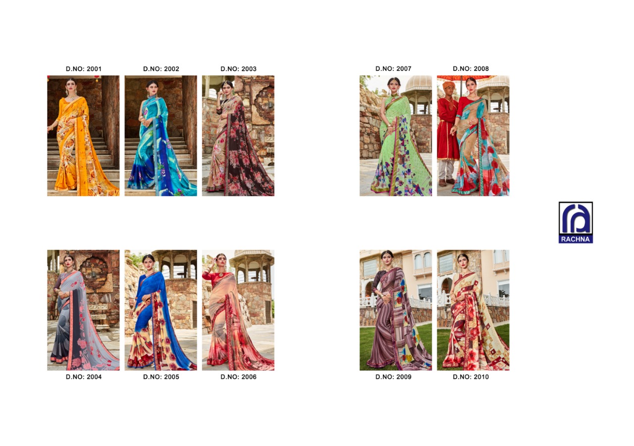 Rachna arts Seerat 2001-2010 Series exclusive digital printed Sarees concept Sarees concept price surat wholesale price With Heavy Look and Designer Party Wear Saree Comes With Heavy Lace And Pallu.Rachna arts Seerat 2001-2010 Series exclusive digital printed Sarees concept collection wholesale supplier With Blouse price New Designs Available With Full and Single Catalogue Rachna arts presenting exclusive concept of Sarees for Wholesalers, Re sellers And Exporter Of Designer Suits , Party Wear Suits , Pakistani Suits , Casual Suits , Bridal Lehenga Choli , Occasional And Festive Ethnic Wear And Indian Wear Dress Code At Best Price In Surat . For More Collection Of SILk, GEORGETTE, CREPE And Others Brands Like Zoya , Vinay Fashion , LT Nitya , PALAV FABRICS ,Hotlady , Glossy Simar , Maisha Maskeen, Fiona , Nakkashi , Gulzar , Jinam Floral , Mughda . Mohini Fashion , Leo Fashion, Sybella Creation , Vipul Fashion , Karma Bela Fashion, Arihant ,Zubeda , Mehak , Kimora Heer ,Lavina , Varsiddhi , TFH , Triveni And For Other More Catalogues Please Contact On This Number +91 8347-3656-15 Or Email Us - [email protected]