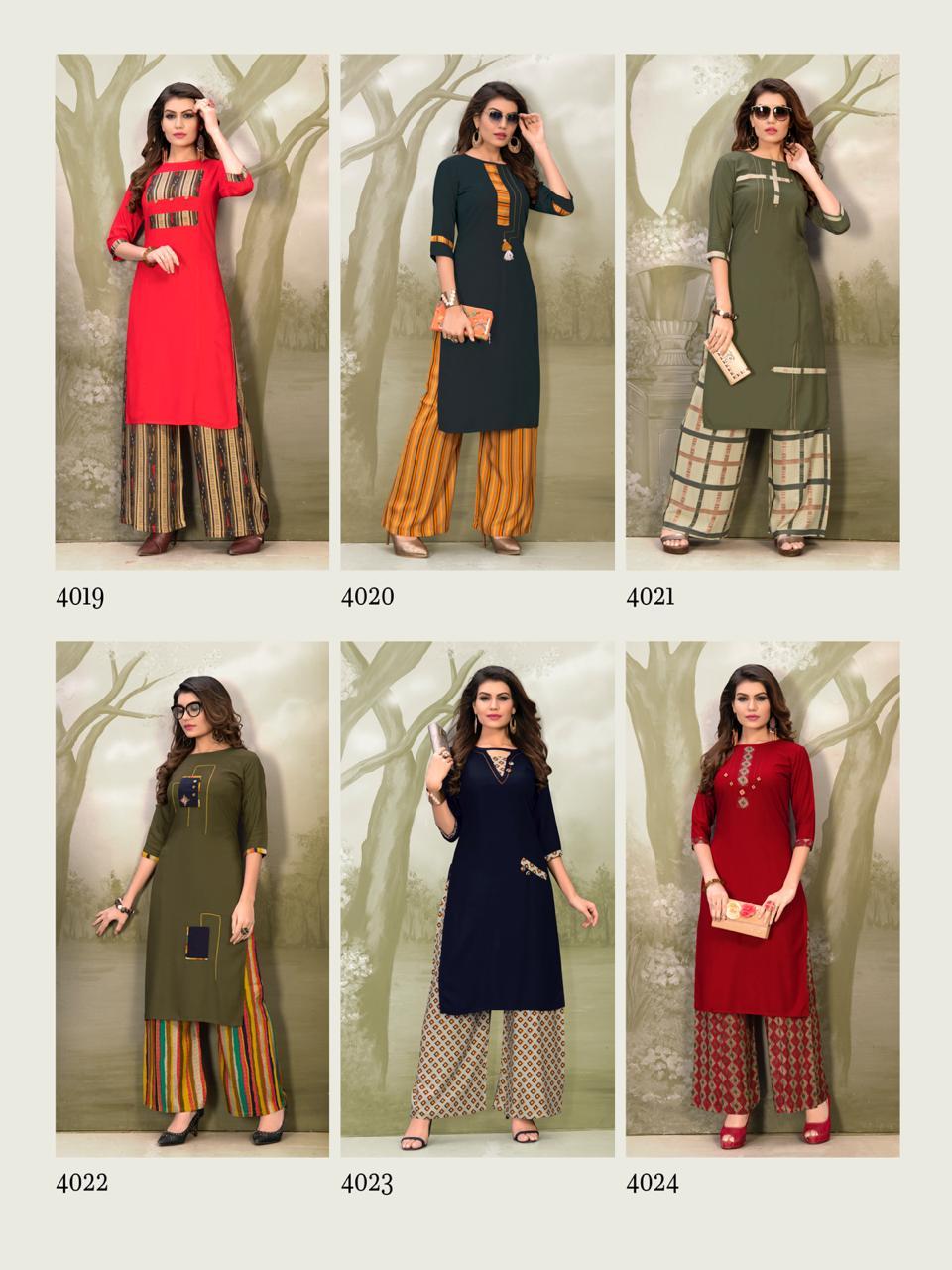rijiya trends plazzo queen vol 4 4019-4024 Series 3810 + 5% GSt Extra rayon top with plazzo seller Collection In Surat Dealer In Gujarat Wholesalers With Heavy Print And Texture Are New Designs Available With Full And Single Catalog For Wholesaler And Exporter Of Designer Suits & Kurtis, Party Wear Suits , Pakistani Suits , Casual Suits , Pakistani Salwar Suits, Bollywood Designer Lehenga Choli, Low Price Cotton Printed Salwar Kameez, Wholesale Sarees Catalogue,Ethnic Wear For Women ,S4U Kurtis Catalogue , Designer Kurtis Wholesale,Dress Material Wholesale,Bridal Lehenga Choli , Occasional And Festive Ethnic Wear And Indian Wear Dress Code At Best Price In Surat . For More Collection Of Studio And Dealing In All Major Brands From Surat Like Aashirwad , Alok Suits , Amirah , Angroop Plus , Arihant Designer , Avc , Balaji Cotton , Bela , Belliza , Cosmos , Cygnus , Deepsy , Deeptex , Diksha , Diya Trendz , Eba , Fairlady , Fepic , Fiona. , Four Button , Ganga , Gulzar , Hansa , House Of Lawn , Inaya , Ishaal Prints , Jinaam Dresses, Jk Cotton , Juvi Fashion , Kajal Style , Kajree Fashion , Kalarang , Kapil Kap , Karachi Suits , Karma Trendz , Kesari Trendz , Kessi Fabrics , Kiana Kurti , Kimora Fashion , Krishriyaa , Levisha , Lt Fabrics , Lymi , M3 Fashion , Maisha , Manas Kurti , Mcm Lifestyle , Meera Trendz , Mesmora , Mf , Mrigya , Mittoo Kurti , Mohini Fashion , Moof Fashion, Mugdha , Mumtaz Arts , Psyna Tex , Radhika Fashion , Rangoon , Rani Trendz , Rsf , Rupali Trendz , Rr Fashion , Rvee Gold , S4U , Sahiba , Sajawat Creation , Samaira Fashion , Sargam Prints , Shahnaz Arts , Shraddha Designer , Shree Fabs , Seriema , Sybella , Tanishk Fashion , Tunic House , Twisha , Vasanche , Viksit Fab , Vinay Fashion , Vink Kurti , Vipul Fashion , Volono Trendz , Vf Kurti , Your Choice , Zs Textile , Zubeda Zoya , Vinay Fashion Wholesale, Lt Nitya , Hotlady , Glossy Simar , Deepsy Suit ,Maisha Maskeen, Fiona , Nakkashi , Gulzar , Jinam Floral , Mugdha Suits , Mohini Fashion , Leo Fashion, Sybella Creation , Vipul Fashion , Karma Bela Fashion, Arihant ,Zubeda , Mehak , Kimora Heer ,Lavina , Varsiddhi , Tfh , Triveni And For Other More Catalogues Please Contact On This Number +91 8347-3656-15 Or Email Us - [email protected]