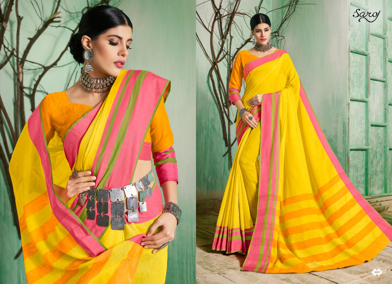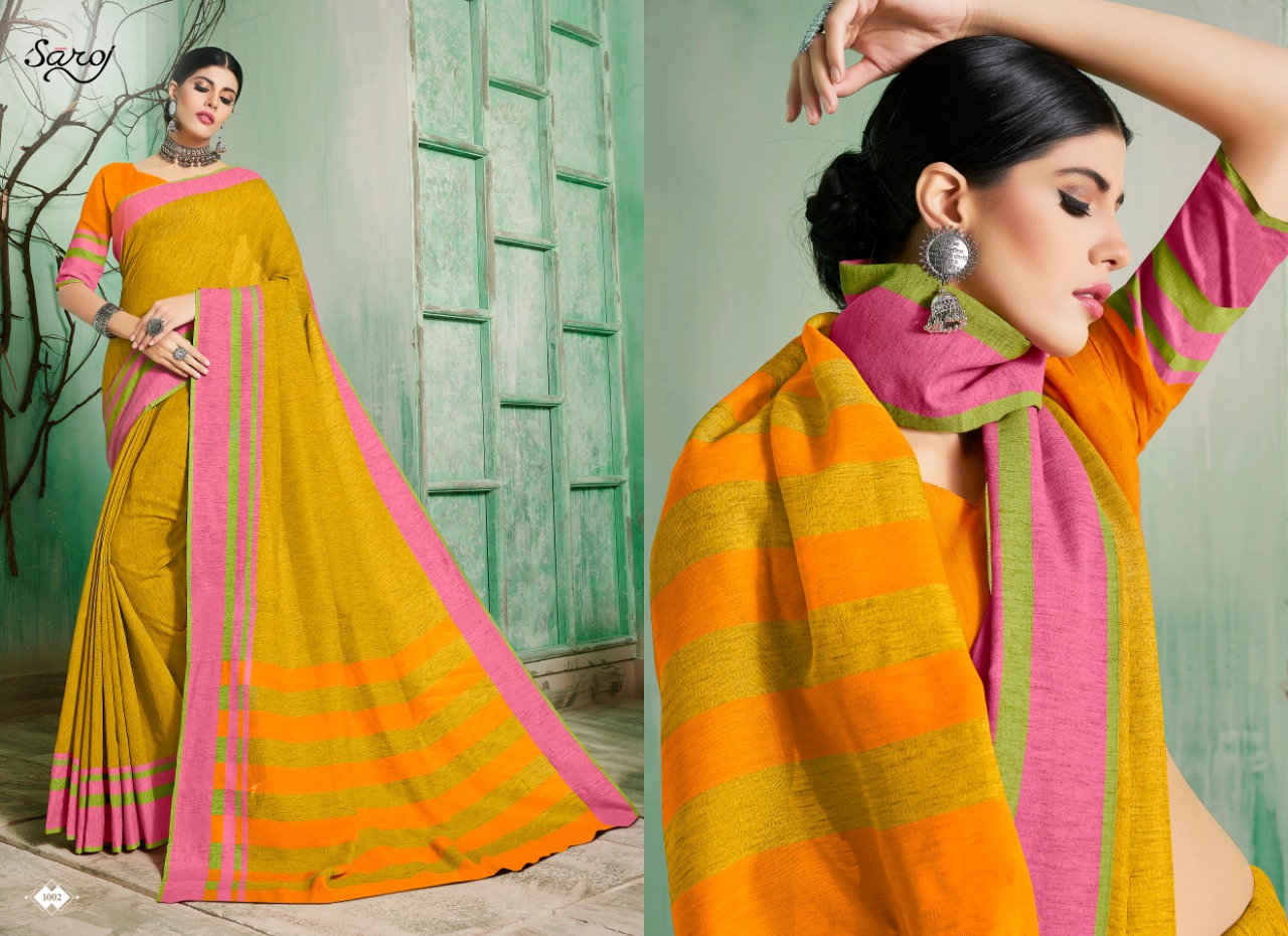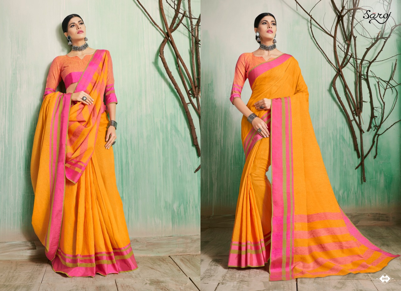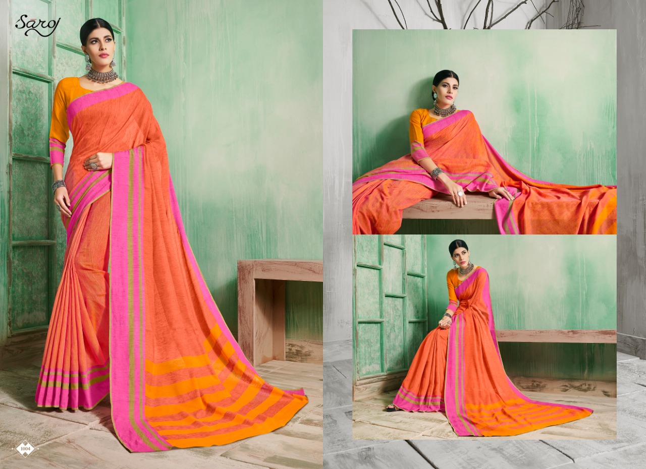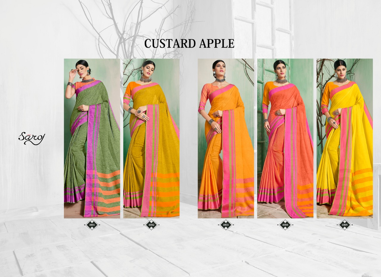Saroj launch castard apple 1001-1005 Series beautiful casual Sarees collection concept price surat wholesale price With Heavy Look and Designer Party Wear Saree Comes With Heavy Lace And Pallu.Saroj launch castard apple 1001-1005 Series beautiful casual Sarees collection wholesale supplier With Blouse price New Designs Available With Full and Single Catalogue Saroj presenting exclusive concept of Sarees for Wholesalers, Re sellers And Exporter Of Designer Suits , Party Wear Suits , Pakistani Suits , Casual Suits , Bridal Lehenga Choli , Occasional And Festive Ethnic Wear And Indian Wear Dress Code At Best Price In Surat . For More Collection Of SILk, GEORGETTE, CREPE And Others Brands Like Zoya , Vinay Fashion , LT Nitya , PALAV FABRICS ,Hotlady , Glossy Simar , Maisha Maskeen, Fiona , Nakkashi , Gulzar , Jinam Floral , Mughda . Mohini Fashion , Leo Fashion, Sybella Creation , Vipul Fashion , Karma Bela Fashion, Arihant ,Zubeda , Mehak , Kimora Heer ,Lavina , Varsiddhi , TFH , Triveni And For Other More Catalogues Please Contact On This Number +91 8347-3656-15 Or Email Us - [email protected]