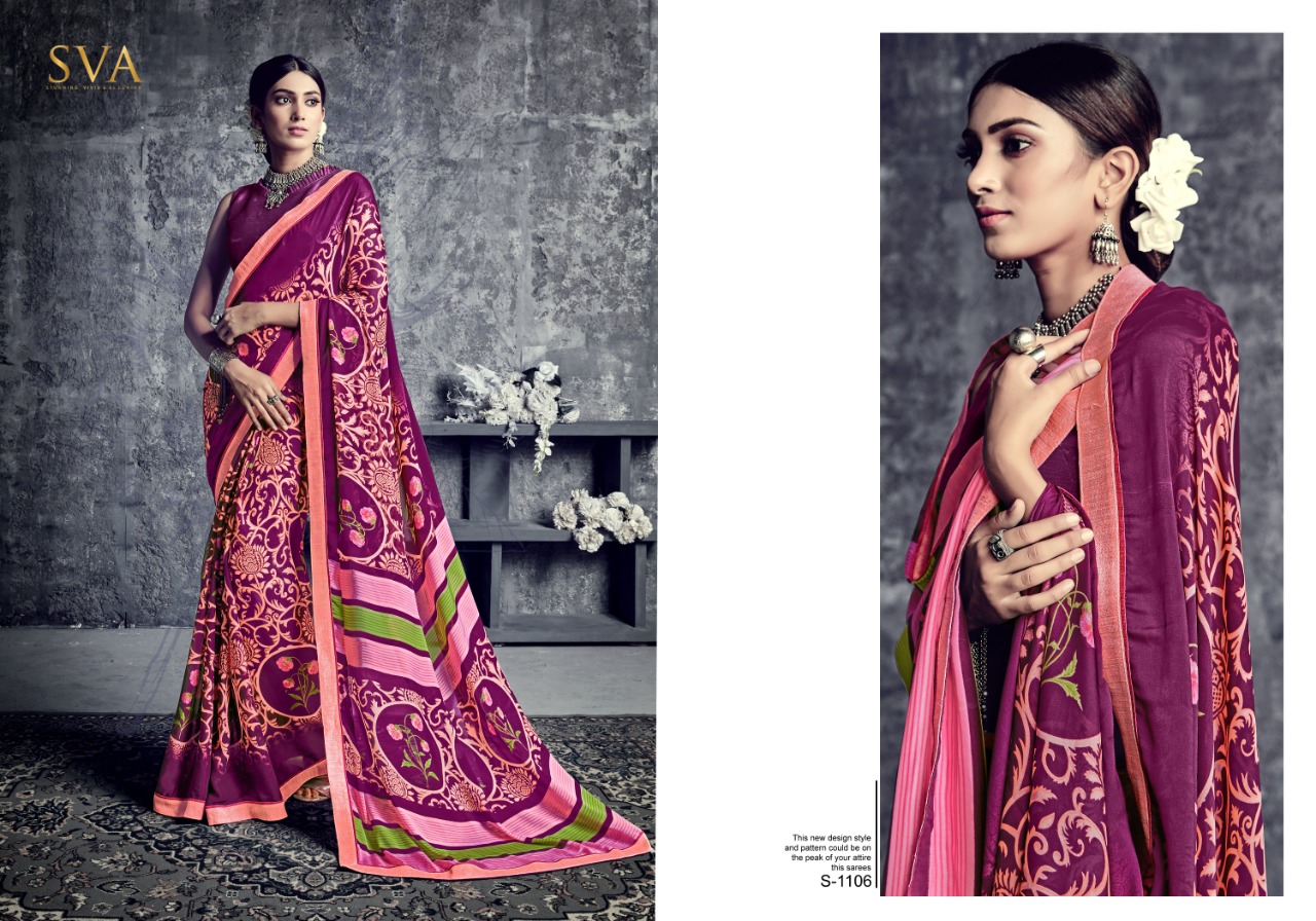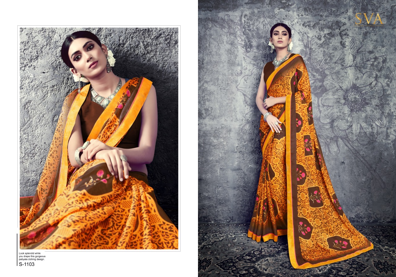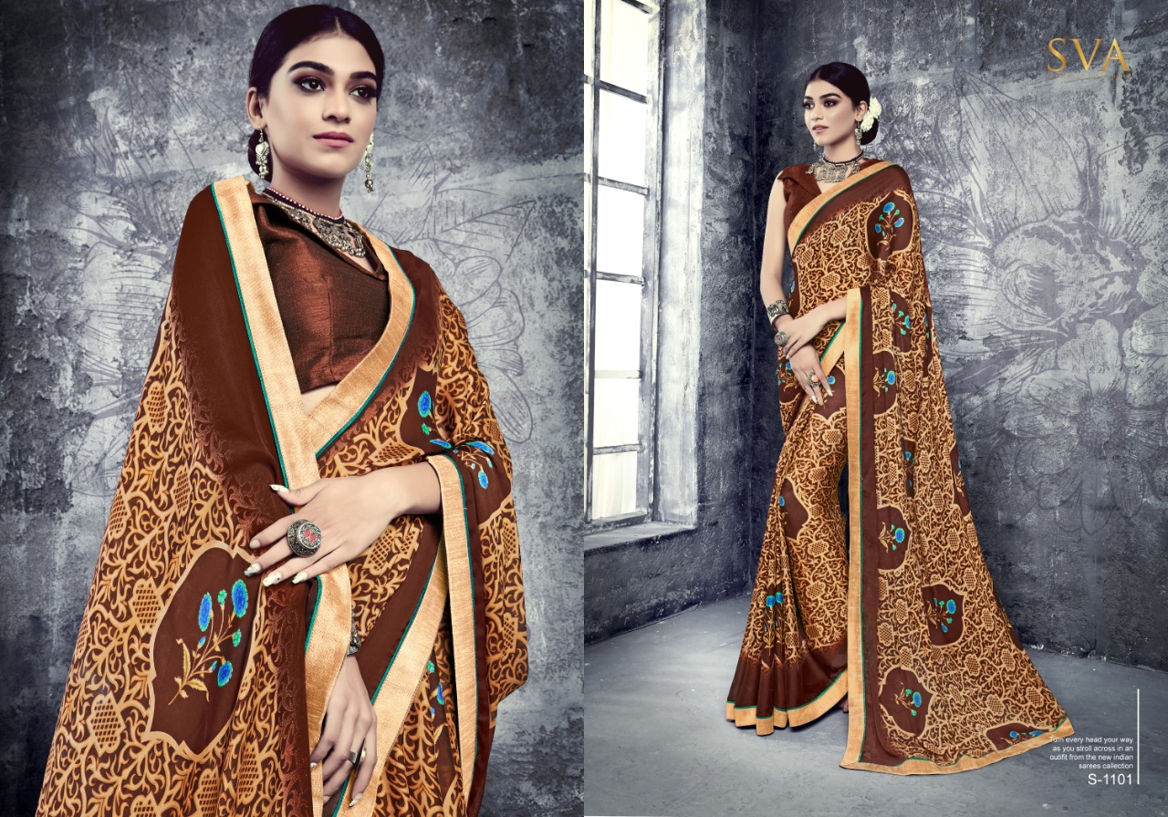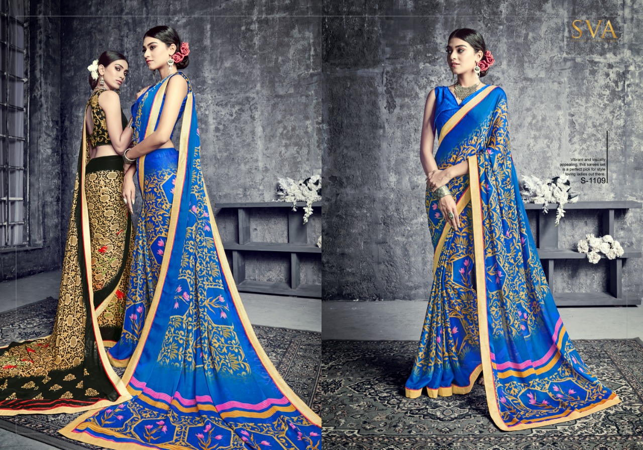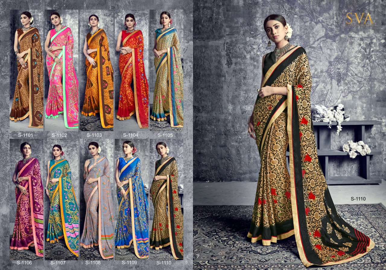 SVA series 1101 1101-1110 Series casual daily wear beautiful collection of Sarees concept price surat wholesale price With Heavy Look and Designer Party Wear Saree Comes With Heavy Lace And Pallu.SVA series 1101 1101-1110 Series casual daily wear beautiful collection of Sarees collection wholesale supplier With Blouse price New Designs Available With Full and Single Catalogue SVA presenting exclusive concept of Sarees for Wholesalers, Re sellers And Exporter Of Designer Suits , Party Wear Suits , Pakistani Suits , Casual Suits , Bridal Lehenga Choli , Occasional And Festive Ethnic Wear And Indian Wear Dress Code At Best Price In Surat . For More Collection Of SILk, GEORGETTE, CREPE And Others Brands Like Zoya , Vinay Fashion , LT Nitya , PALAV FABRICS ,Hotlady , Glossy Simar , Maisha Maskeen, Fiona , Nakkashi , Gulzar , Jinam Floral , Mughda . Mohini Fashion , Leo Fashion, Sybella Creation , Vipul Fashion , Karma Bela Fashion, Arihant ,Zubeda , Mehak , Kimora Heer ,Lavina , Varsiddhi , TFH , Triveni And For Other More Catalogues Please Contact On This Number +91 8347-3656-15 Or Email Us - [email protected]