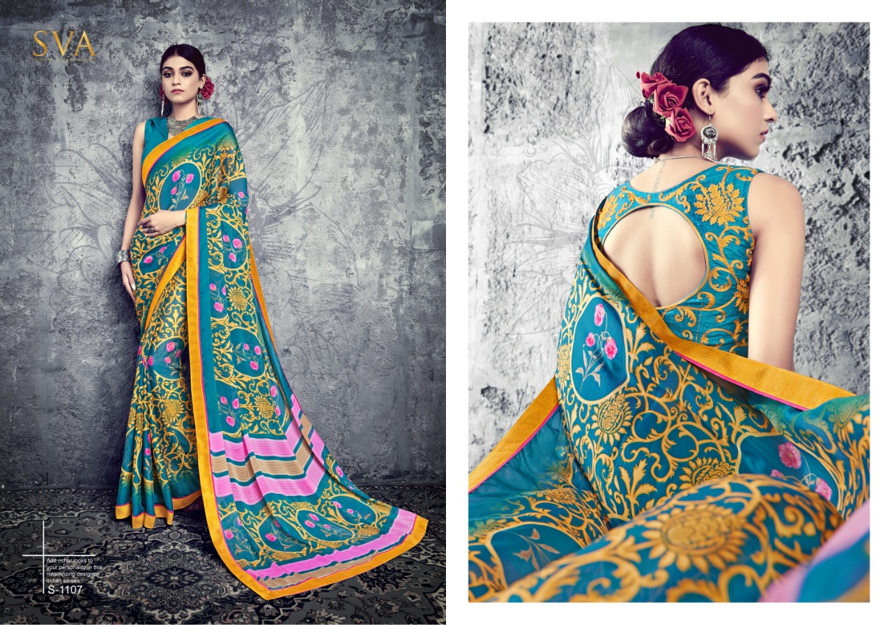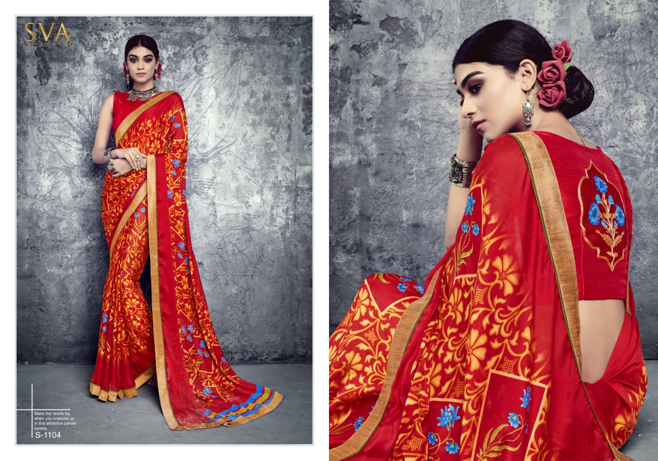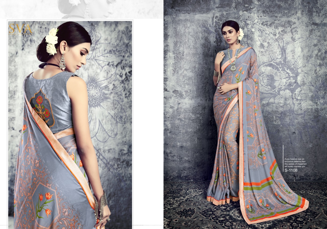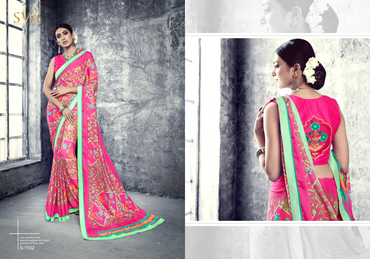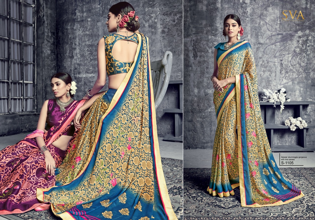 SVA series 1101 1101-1110 Series casual daily wear beautiful collection of Sarees concept price surat wholesale price With Heavy Look and Designer Party Wear Saree Comes With Heavy Lace And Pallu.SVA series 1101 1101-1110 Series casual daily wear beautiful collection of Sarees collection wholesale supplier With Blouse price New Designs Available With Full and Single Catalogue SVA presenting exclusive concept of Sarees for Wholesalers, Re sellers And Exporter Of Designer Suits , Party Wear Suits , Pakistani Suits , Casual Suits , Bridal Lehenga Choli , Occasional And Festive Ethnic Wear And Indian Wear Dress Code At Best Price In Surat . For More Collection Of SILk, GEORGETTE, CREPE And Others Brands Like Zoya , Vinay Fashion , LT Nitya , PALAV FABRICS ,Hotlady , Glossy Simar , Maisha Maskeen, Fiona , Nakkashi , Gulzar , Jinam Floral , Mughda . Mohini Fashion , Leo Fashion, Sybella Creation , Vipul Fashion , Karma Bela Fashion, Arihant ,Zubeda , Mehak , Kimora Heer ,Lavina , Varsiddhi , TFH , Triveni And For Other More Catalogues Please Contact On This Number +91 8347-3656-15 Or Email Us - [email protected]
