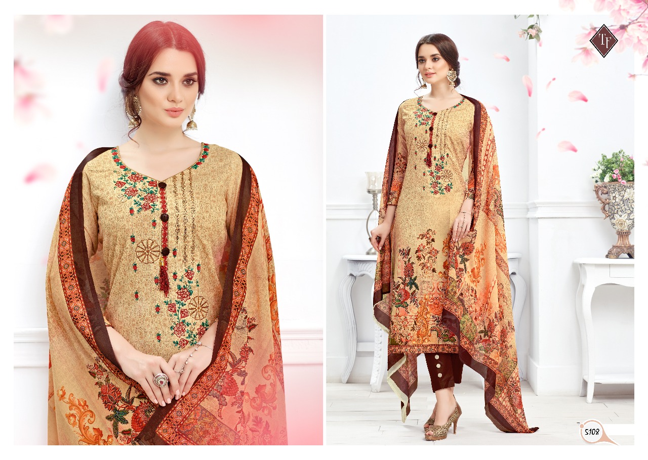 Tanishk Fashion Muslin 5101-5108 Series Digital Cataloge collection exporter wholesaler Comes With Heavy Lace And Dupatta .Tanishk Fashion Muslin 5101-5108 Series Digital Cataloge are New Designs Available With Full and Single Catalogue are for Wholesaler, Re sellers And Exporter Of Designer Suits , Party Wear Suits , Pakistani Suits , Casual Suits , Bridal Lehenga Choli , Occasional And Festive Ethnic Wear And Indian Wear Dress Code At Best Price In Surat . For More Collection Of Lavina And Others Brands Like Zoya , Vinay Fashion , LT Nitya , Hotlady , Glossy Simar , Maisha Maskeen, Fiona , Nakkashi , Gulzar , Jinam Floral , Mughda . Mohini Fashion , Leo Fashion, Sybella Creation , Vipul Fashion , Karma Bela Fashion, Arihant ,Zubeda , Mehak , Kimora Heer ,Lavina , Varsiddhi , TFH , Triveni And For Other More Catalogues Please Contact On This Number +91 8347-3656-15 Or Email Us - [email protected]