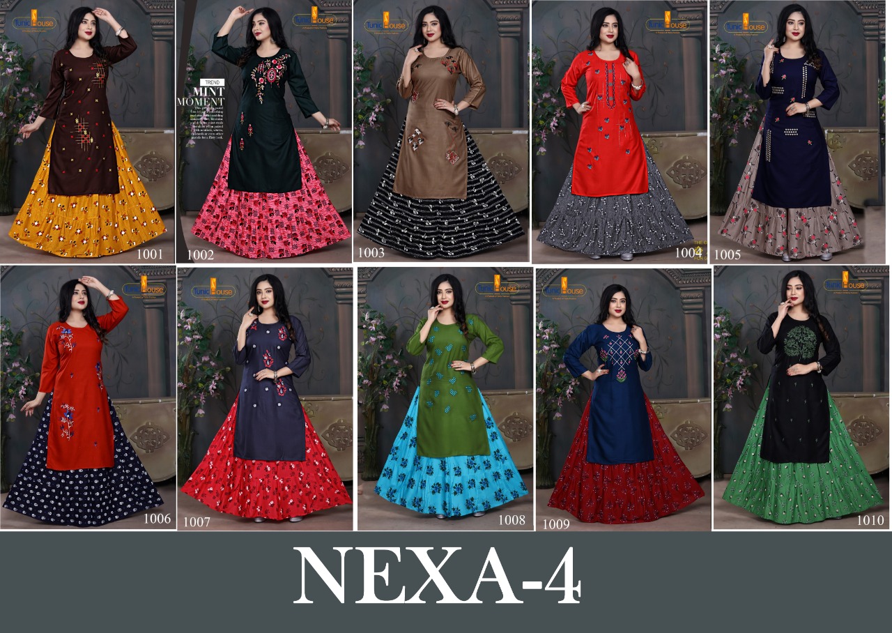 TUNIC HOUSE NEXA 4 TOP WITH SKIRT RATE 5500 + 5% GSt Extra Salwar Kameez Collection dealer With Heavy Print And Texture Are New Designs Available With Full And Single Catalog For Wholesaler And Exporter Of Designer Suits & Kurtis, Party Wear Suits , Pakistani Suits , Casual Suits , Pakistani Salwar Suits, Bollywood Designer Lehenga Choli, Low Price Cotton Printed Salwar Kameez, Wholesale Sarees Catalogue ,Ethnic Wear For Women ,S4U Kurtis Catalogue , Designer Kurtis Wholesale ,Dress Material Wholesale ,Bridal Lehenga Choli , Occasional And Festive Ethnic Wear And Indian Wear Dress Code At Best Price In Surat . For More Collection Of Studio And Dealing In All Major Brands From Surat Like Aashirwad , Alok Suits , Amirah , Angroop Plus , Arihant Designer , Avc , Balaji Cotton , Bela , Belliza , Cosmos , Cygnus , Deepsy , Deeptex , Diksha , Diya Trendz , Eba , Fairlady , Fepic , Fiona. , Four Button , Ganga , Gulzar , Hansa , House Of Lawn , Inaya , Ishaal Prints , Jinaam Dresses, Jk Cotton , Juvi Fashion , Kajal Style , Kajree Fashion , Kalarang , Kapil Kap , Karachi Suits , Karma Trendz , Kesari Trendz , Kessi Fabrics , Kiana Kurti , Kimora Fashion , Krishriyaa , Levisha , Lt Fabrics , Lymi , M3 Fashion , Maisha , Manas Kurti , Mcm Lifestyle , Meera Trendz , Mesmora , Mf , Mrigya , Mittoo Kurti , Mohini Fashion , Moof Fashion, Mugdha , Mumtaz Arts , Psyna Tex , Radhika Fashion , Rangoon , Rani Trendz , Rsf , Rupali Trendz , Rr Fashion , Rvee Gold , S4U , Sahiba , Sajawat Creation , Samaira Fashion , Sargam Prints , Shahnaz Arts , Shraddha Designer , Shree Fabs , Seriema , Sybella , Tanishk Fashion , Tunic House , Twisha , Vasanche , Viksit Fab , Vinay Fashion , Vink Kurti , Vipul Fashion , Volono Trendz , Vf Kurti , Your Choice , Zs Textile , Zubeda Zoya , Vinay Fashion Wholesale, Lt Nitya , Hotlady , Glossy Simar , Deepsy Suit ,Maisha Maskeen, Fiona , Nakkashi , Gulzar , Jinam Floral , Mugdha Suits , Mohini Fashion , Leo Fashion, Sybella Creation , Vipul Fashion , Karma Bela Fashion, Arihant ,Zubeda , Mehak , Kimora Heer ,Lavina , Varsiddhi , Tfh , Triveni And For Other More Catalogues Please Contact On This Number +91 8347-3656-15 Or Email Us - [email protected]