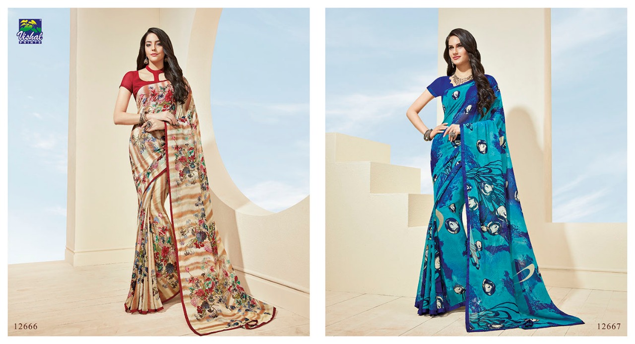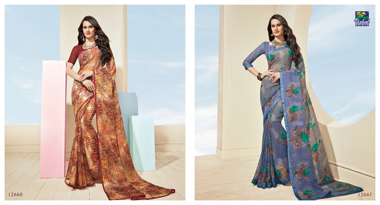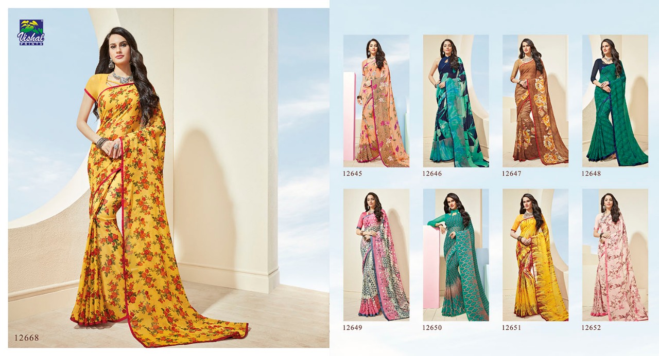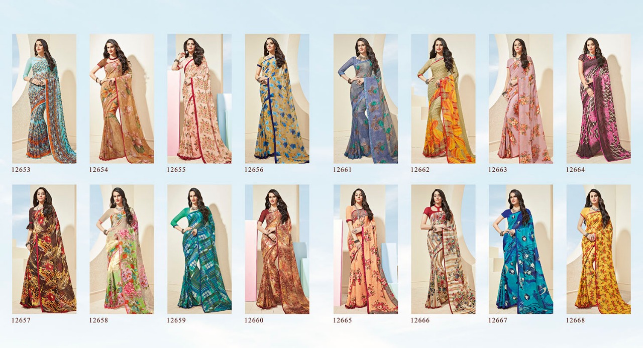 Vishal sarees presenting mirabel 12645-12668 Series casual wear Collection of sarees With Heavy Look and Designer Party Wear Saree Comes With Heavy Lace And Pallu.Vishal sarees presenting mirabel 12645-12668 Series casual wear Collection of sarees New Designs Available With Full and Single Catalogue Vishal sarees presenting exclusive concept of Sarees for Wholesalers, Re sellers And Exporter Of Designer Suits , Party Wear Suits , Pakistani Suits , Casual Suits , Bridal Lehenga Choli , Occasional And Festive Ethnic Wear And Indian Wear Dress Code At Best Price In Surat . For More Collection Of SILk, GEORGETTE, CREPE And Others Brands Like Zoya , Vinay Fashion , LT Nitya , PALAV FABRICS ,Hotlady , Glossy Simar , Maisha Maskeen, Fiona , Nakkashi , Gulzar , Jinam Floral , Mughda . Mohini Fashion , Leo Fashion, Sybella Creation , Vipul Fashion , Karma Bela Fashion, Arihant ,Zubeda , Mehak , Kimora Heer ,Lavina , Varsiddhi , TFH , Triveni And For Other More Catalogues Please Contact On This Number +91 8347-3656-15 Or Email Us - [email protected]