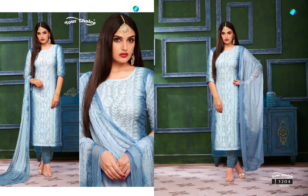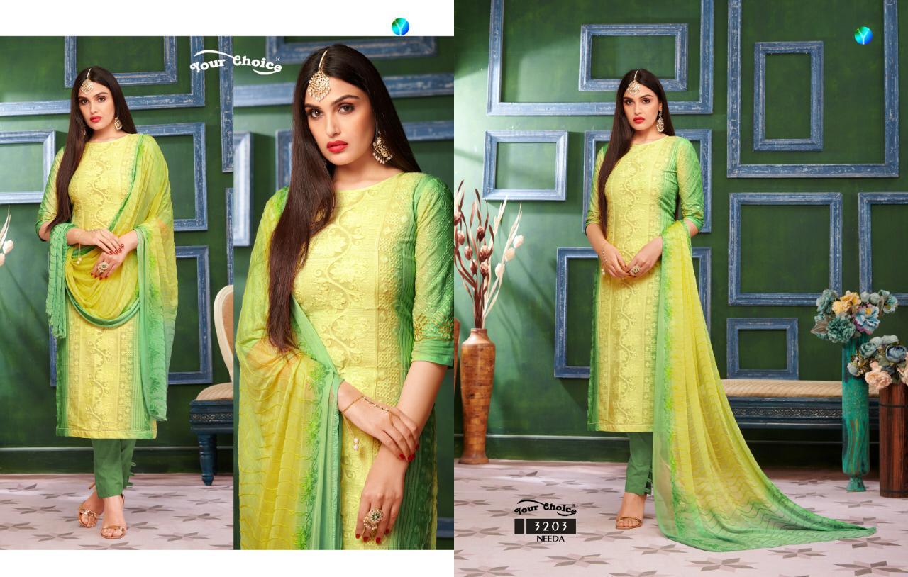 your choice launch needa 3203-3206 Series 3580 + 5% GSt Extra cotton salwar suit wholesale dealer collection at best rate collection catalog wholesaler in surat dealer in gujarat wholesalers With Heavy Print And Texture are New Designs Available With Full and Single Catalog for Wholesaler And Exporter Of Designer Suits & Kurtis, Party Wear Suits , Pakistani Suits , Casual Suits , Pakistani Salwar Suits, Bollywood Designer Lehenga Choli, Low Price Cotton Printed Salwar Kameez, Wholesale Sarees Catalogue,Ethnic Wear For Women ,S4u Kurtis Catalogue , Designer Kurtis Wholesale,Dress Material Wholesale,Bridal Lehenga Choli , Occasional And Festive Ethnic Wear And Indian Wear Dress Code At Best Price In Surat . For More Collection Of STUDIO And Others Brands Like Zoya , Vinay Fashion Wholesale, LT Nitya , Hotlady , Glossy Simar , Deepsy Suit ,Maisha Maskeen, Fiona , Nakkashi , Gulzar , Jinam Floral , Mugdha suits , Mohini Fashion , Leo Fashion, Sybella Creation , Vipul Fashion , Karma Bela Fashion, Arihant ,Zubeda , Mehak , Kimora Heer ,Lavina , Varsiddhi , TFH , Triveni And For Other More Catalogues Please Contact On This Number +91 8347-3656-15 Or Email Us - [email protected]